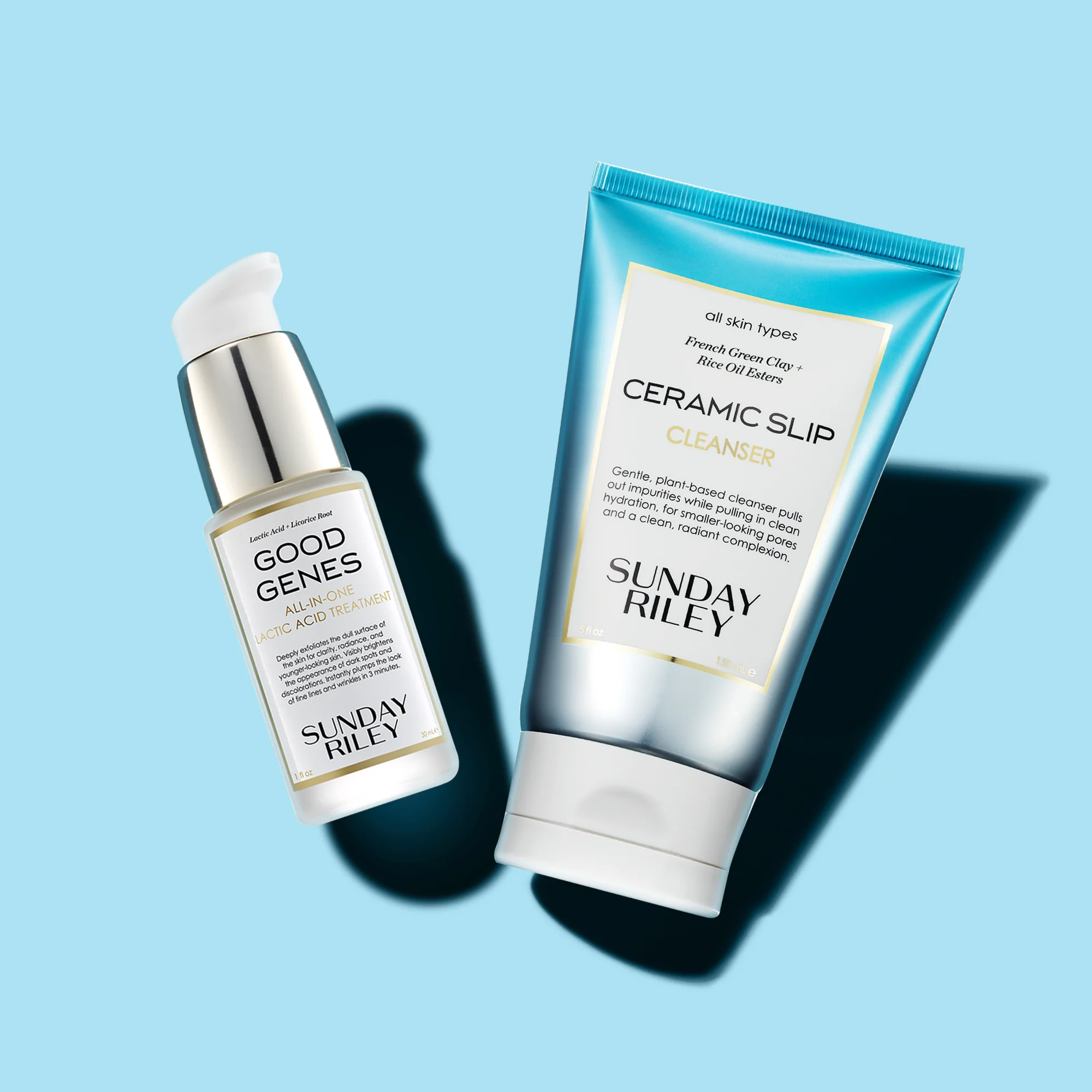 Two cult-favorites in one easy, quick-fix kit. Good Genes Lactic Acid Treatment immediately exfoliates dull, pore-clogging dead skin cells, and reveals smoother, clearer, younger-looking skin. With continued use, the appearance of dark spots and the visible signs of aging are reduced for a healthier-looking complexion. Ceramic Slip Cleanser balances and purifies the complexion, visibly minimizes the appearance of pores, and removes excess oil and impurities. Can be used separately or blended for an instant mask.